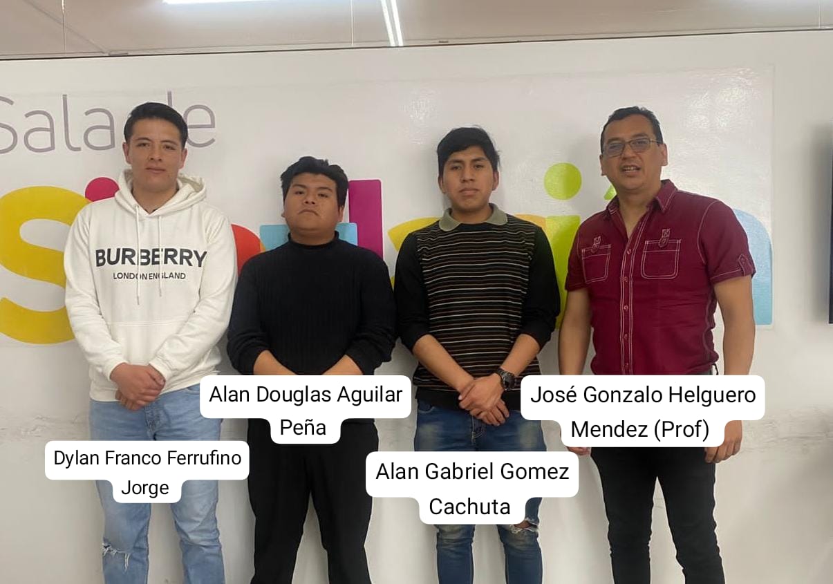 ALAN DOUGLAS AGUILAR PENA, DYLAN FRANCO FERRUFINO JORGE, ALAN GABRIEL GOMEZ CACHUTA, JOSÉ GONZALO HELGUERO MÉNDEZ (PROF)